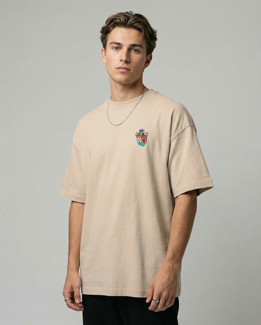 HEARTTHROB: Beige Premium Oversized T-Shirt
