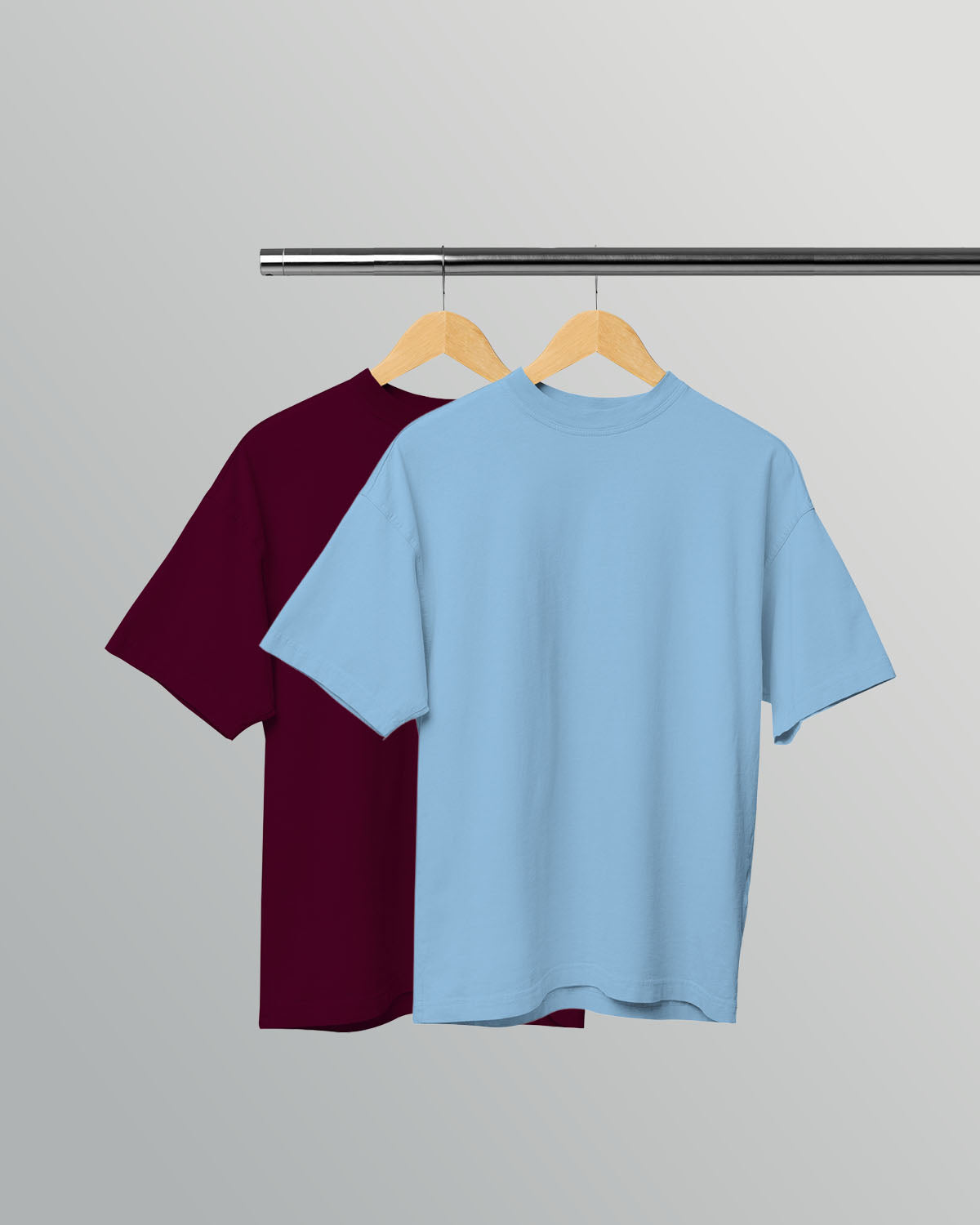 Pack of 2 Oversized Unisex T-Shirts –Burgundy, Baby Blue