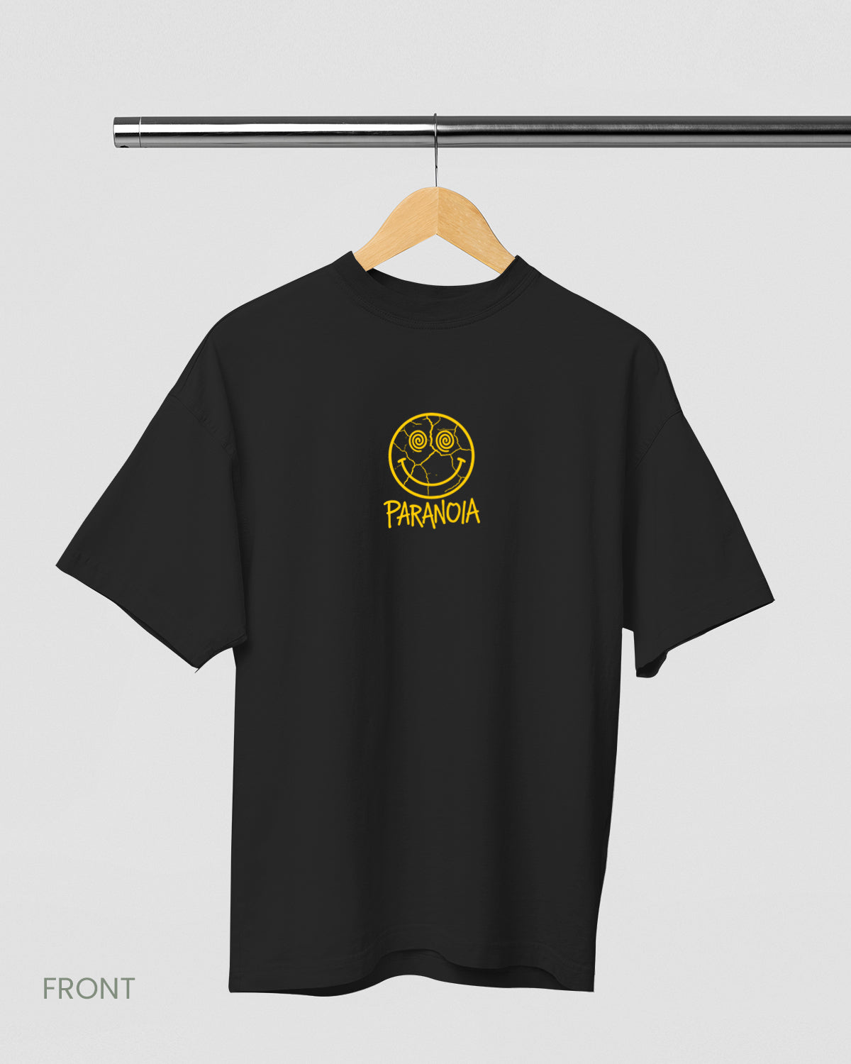 PARANOIA: BLACK OVERSIZED T-SHIRT FOR MEN