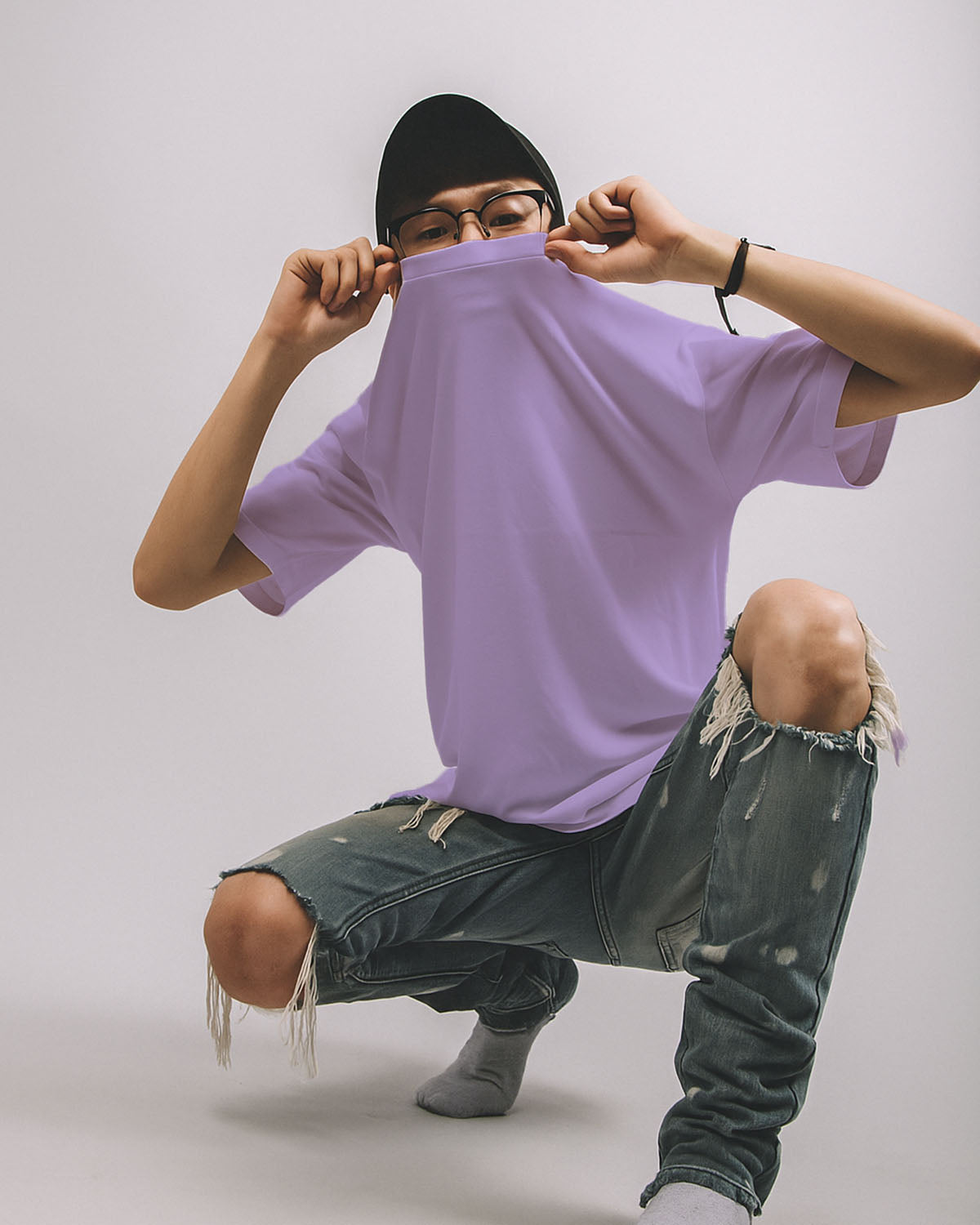 SOLID PLAIN LAVENDER OVERSIZED T-SHIRT FOR MEN